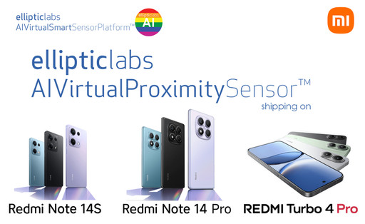 挪威,奥斯陆 —全球AI软件公司、 AI Virtual Smart Sensors™的世界领导者Elliptic Labs (OSE: ELABS) 推出的技术目前已在超过五亿台设备上部署。日前,该公司宣布小米三款新发的智能手机搭载其AI Virtual Proximity Sensor™ INNER BEAUTY®,它们分别是Redmi Turbo 4 Pro,Redmi Note 14S和Redmi Note 14Pro,三款手机均面向全球市场发售。Redmi Turbo 4 Pro采用了Elliptic Labs的合作伙伴高通的Snapdragon 8s Gen 4芯片组,Redmi Note 14S和14 Pro采用了Elliptic Labs的另外一家合作伙伴联发科的Helio G99 Ultimate芯片组。 Elliptic Labs在2024年3月下旬宣布了此次发布的合同。