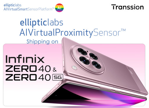 挪威, 奥斯陆 — 全球AI软件公司、 AI Virtual Smart Sensors™的世界领导者Elliptic Labs(OSE: ELABS)推出的技术目前已在超过五亿台设备上部署。日前,该公司宣布其AI Virtual Proximity Sensor™ INNER BEAUTY®在传音的Infinix Zero 40系列智能手机上搭载。传音将面向全球市场发售 Infinix 40 Zero和40 Zero 5G两款手机。这两款智能手机都由Elliptic Labs的合作伙伴联发科提供芯片作为核心驱动。Inifinix Zero 40采用了联发科的Helio G100芯片,而更高端的Inifinix Zero 40 5G搭载了天玑8200 Ultimate芯片。该项目合作计划已在2024年3月由Elliptic Labs宣布。