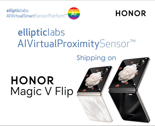 挪威, 奥斯陆 — 全球AI软件公司、 AI Virtual Smart Sensors™的世界领导者Elliptic Labs(OSE: ELABS)推出的技术目前已在超过五亿台设备上部署。日前,该公司宣布其AI Virtual Proximity Sensor™ INNER BEAUTY®将在荣耀的Magic V Flip智能手机上搭载。 这款 Magic V Flip手机是一款现代化创新款式的智能手机,拥有全屏翻盖折叠设计,这是荣耀首次尝试此类设计。Elliptic Labs的合作伙伴高通为Magic V Flip搭配Snapdragon 8+ Gen 1芯片作为核心驱动。此前,Elliptic Labs已公布此次合作的协议签署。