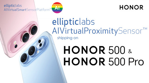 挪威,奥斯陆 — Elliptic Labs 的 AI 虚拟接近传感器 INNER BEAUTY®现已应用于荣耀500和500 Pro 智能手机,带来稳定及AI赋能的接近感应功能,同时实现更简洁的设计与更低的硬件复杂度。