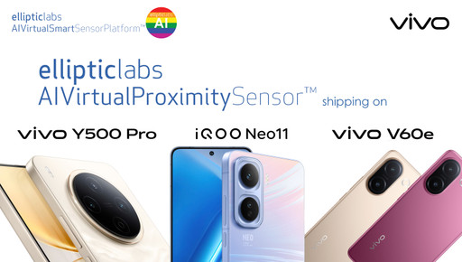 挪威,奥斯陆 — Elliptic Labs 的 AI 虚拟接近传感器 INNER BEAUTY®已应用于 vivo 最新发布的智能手机 iQOO Neo11、Y500 Pro 和V60e,带来稳定及AI赋能的接近感应功能,同时实现更简洁的设计与更低的硬件复杂度。