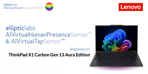 挪威, 奥斯陆 — 全球AI软件公司、 AI Virtual Smart Sensors™的世界领导者Elliptic Labs (OSE: ELABS)推出的技术目前已在超过5亿台设备上部署。日前,该公司宣布在联想最新发布的Thinkpad X1 Carbon Aura Edition 上推出其AI虚拟传感平台。这款高端笔记本的发布标志着 Elliptic Labs创新技术的最新应用,其中包括AI虚拟人体存在检测传感器(AI Virtual Human Presence Sensor)以及由 Elliptic Labs 的 AI 虚拟轻触传感器(AI Virtual Tap Sensor)为基础的全新Smart Share功能,这一突破性功能可通过手机轻触笔记本显示屏侧边,实现智能手机与Aura Edition笔记本之间的无缝照片传输。这款产品搭载了英特尔最新的Core Ultra 芯片组(第 2 代),充分展示了 Elliptic Labs 纯软件AI解决方案的潜力。本次发布是2024 年 7 月成功签署的合同公告的研发成果。