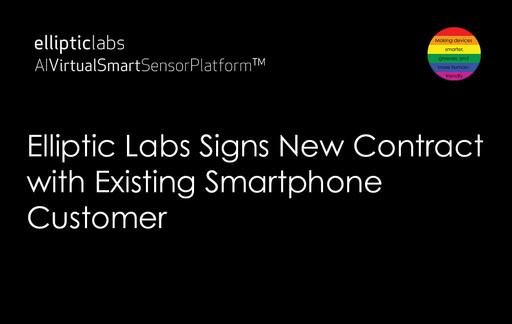 挪威奥斯陆 — 全球AI软件公司、 AI Virtual Smart Sensors™的世界领导者Elliptic Labs (OSE: ELABS)推出的技术目前已在超过5亿台设备上部署。今日,该公司宣布已与现有的智能手机客户达成了一项新的扩展协议。这个新合同涵盖了Elliptic Labs的 AI Virtual Proximity Sensor™ INNER BEAUTY®将用于现有客户未来发布的智能手机产品中。