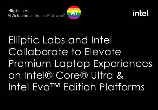 Oslo, Norway — Elliptic Labs (OSE: ELABS), a global AI software company and the world leader in AI Virtual Smart Sensors™ currently deployed in over half a billion devices, today announced its collaboration with Intel Corporation to bring Elliptic Labs’ AI Virtual Smart Sensor Platform™ to Intel Core Ultra based systems, including those based on the Intel Evo Edition platform. This collaboration aims to deliver breakthrough user experiences and set a new standard for the premium laptops.