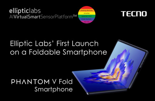 Oslo, Norway — Elliptic Labs (OSE: ELABS), a global AI software company and the world leader in AI Virtual Smart Sensors™, has launched the AI Virtual Proximity Sensor™ INNER BEAUTY® on the Transsion flagship Tecno Phantom V Fold smartphone, Elliptic Labs’ first foldable phone launch. The Tecno Phantom V Fold is being launched for the global market. Elliptic Labs’ partner MediaTek is driving the Tecno Phantom V Fold with its premium Dimensity 9000+ chipset. The contract for this launch was previously announced by Elliptic Labs.