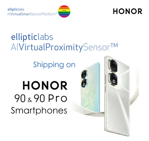 Oslo, Norway — Elliptic Labs (OSE: ELABS), a global AI software company and the world leader in AI Virtual Smart Sensors™ currently deployed in over 500 million devices today, is launching the AI Virtual Proximity Sensor™ INNER BEAUTY® on the flagship Honor 90 series of smartphones. The Honor 90 and Honor 90 Pro is being launched for the global market. Elliptic Labs’ partner Qualcomm is driving both the Honor 90 and 90 Pro with its Snapdragon 8 Gen 1 chipset. The contract for this launch was previously announced by Elliptic Labs.
