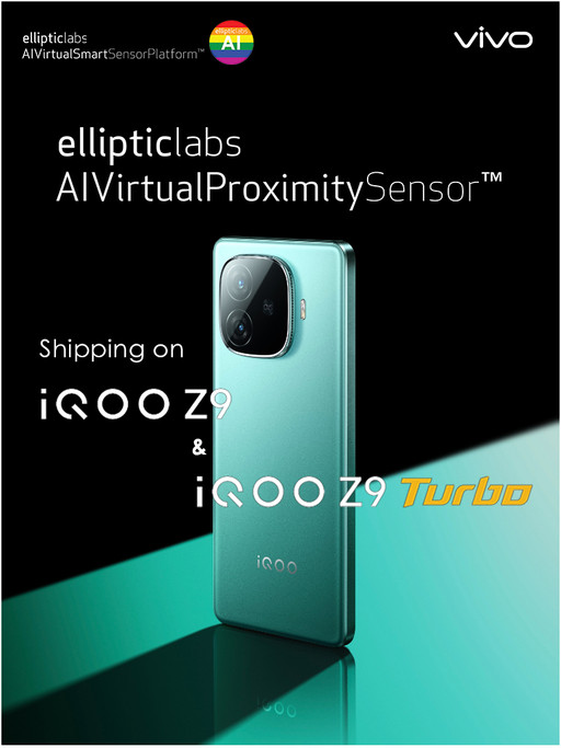 Oslo, Norway — Elliptic Labs (OSE: ELABS), a global AI software company and the world leader in AI Virtual Smart Sensors™ currently deployed in over 500 million devices, is shipping its AI Virtual Proximity Sensor™ INNER BEAUTY® on vivo’s newly announced IQOO Z9 and Z9 Turbo smartphones. The mid-range vivo iQOO Z9 and Z9 Turbo smartphones are targeted for the global market. Both vivo devices are driven by Elliptic Labs’ partner Qualcomm’s chipsets — the iQOO Z9 ships with the Snapdragon 7 Gen 3 chipset and the iQOO Z9 Turbo is driven by the Snapdragon 8s Gen3 chipset. The contract for this launch was previously announced by Elliptic Labs.