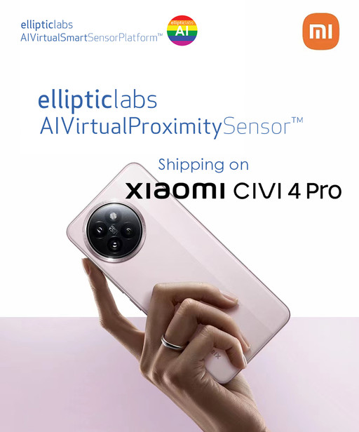 Oslo, Norway — Elliptic Labs (OSE: ELABS), a global AI software company and the world leader in AI Virtual Smart Sensors™ currently deployed in over 500 million devices, is announcing the launch of its AI Virtual Proximity Sensor™ INNER BEAUTY® with long-time customer Xiaomi, the third largest smartphone maker globally, on the new Civi 4 Pro smartphone. The Xiaomi Civi 4 Pro, released for the global market, is driven by Elliptic Labs’ partner Qualcomm’s newly announced Snapdragon 8s Gen 3 chipset. The contract for this launch was previously announced by Elliptic Labs.