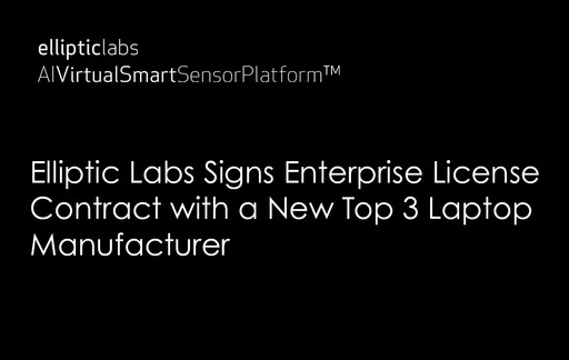 “I’m thrilled to announce that we have signed a new enterprise license agreement with one more of the top-3 laptop manufacturers. This marks another important milestone in becoming the definitive human presence detection solution for the PC/laptop industry at large.” says Laila Danielsen, CEO of Elliptic Labs. “In addition to human presence detection, the largest PC OEMs are seeking differentiating solutions that deliver frictionless user experiences across their broader product portfolio. Elliptic Labs AI Virtual Smart Sensor Platform offers our OEM customers the flexibility and choice they need to build toward that vision.”