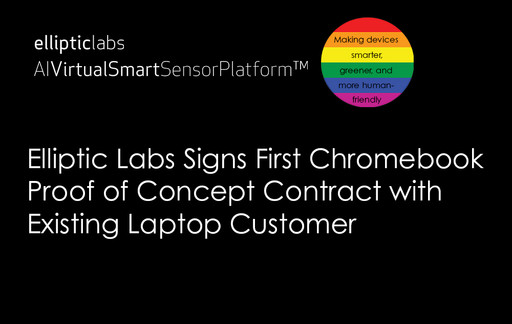 Oslo, Norway — Elliptic Labs (OSE: ELABS), a global AI software company and the world leader in AI Virtual Smart Sensors™, has signed its first Chromebook proof of concept agreement with an existing PC/laptop customer. This agreement will cover the implementation of Elliptic Labs’ AI Virtual Human Presence Sensor™ to provide human presence detection for potential use on the PC/laptop customer’s future Chromebook laptops, tablets, and PCs. Chromebooks run Google’s ChromeOS as its operating system, instead of Microsoft Windows operating system. According to a Statista report from February 2022, Chromebooks were projected to make up 12.5% of all laptops shipped for the year.