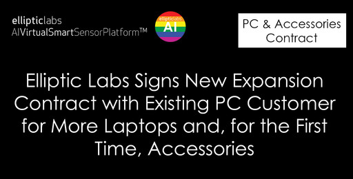 Oslo, Norway — Elliptic Labs (OSE: ELABS), a global AI software company and the world leader in AI Virtual Smart Sensors™ currently deployed in over 500 million devices, has signed a new expansion contract with an existing PC customer to bring next generation user experiences with the AI Virtual Seamless Sensor™. This agreement enables the customer to implement Elliptic Labs' AI Virtual Smart Sensor Platform™ across additional laptop models and accessories, with the support for more applications and use cases set to launch between 2025 and 2026.