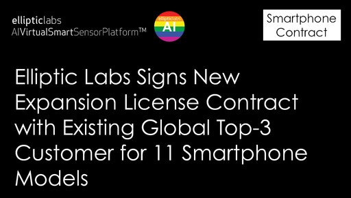 Oslo, Norway — Elliptic Labs (OSE: ELABS), a global AI software company and the world leader in AI Virtual Smart Sensors™ currently deployed in over half a billion devices, has signed a new expansion contract with an existing smartphone customer – a Top-3 global smartphone OEM – for minimum11 confirmed models. These models are scheduled for market launch within the upcoming 12-15 months.
