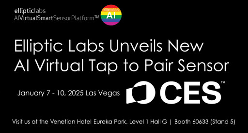 Oslo, Norway — Elliptic Labs (OSE: ELABS), a global AI software company and the world leader in AI Virtual Smart Sensors™ currently deployed in over 500 million devices, will be unveiling it’s latest AI Virtual Smart Sensor, the AI Virtual Tap to Pair Sensor, at CES 2025. The AI Virtual Tap to Pair Sensor brings seamless connectivity between PC peripherals (e.g. mice, keyboards, earbuds and headphones, etc.) and Windows laptops, just with a simple tap of the device against the side of the laptop’s display.